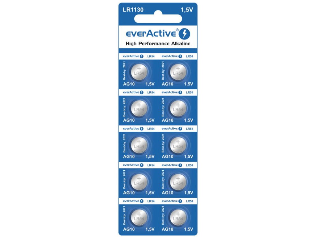Alkalická gombíková batéria Everactive LR1130, 10 ks