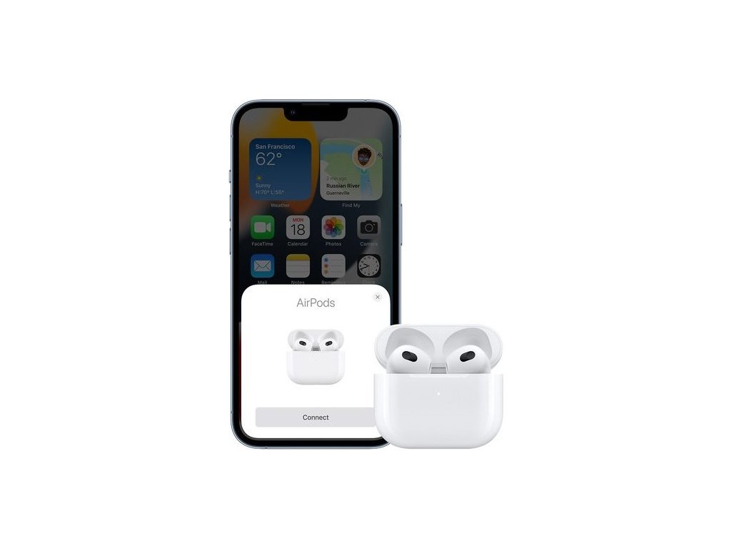AirPods 3. generácie sú ľahké a ponúkajú nový tvar slúchdiel. Sedia v správnom uhle, aby poskytovali pohodlie a lepšie smerovali zvuk do ucha. Stonka je o 33 percent kratšia ako pri AirPods (2. generácie) a obsahuje snímač tlaku na jednoduché ovládanie hudby a hovorov.