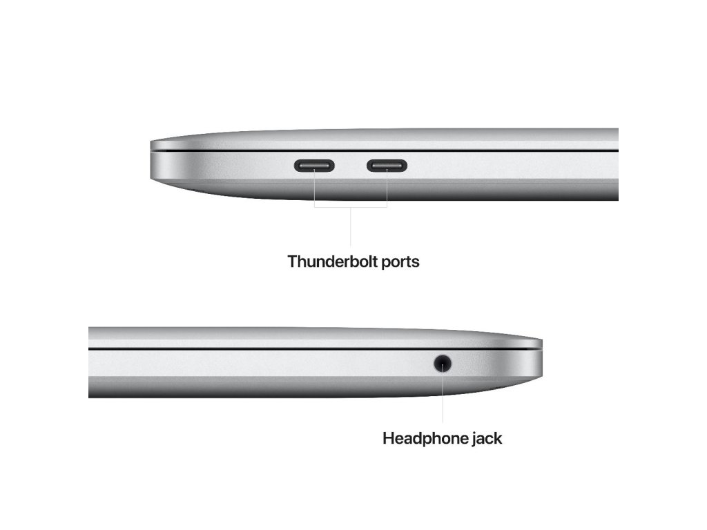 - 2x Thunderbolt / USB 4 s podporou pre: Nabíjanie / DisplayPort / Thunderbolt 3 (až 40 Gb/s) / USB 4 (až 40 Gb/s) / USB 3.1 Gen 2 (až 10 Gb/s)