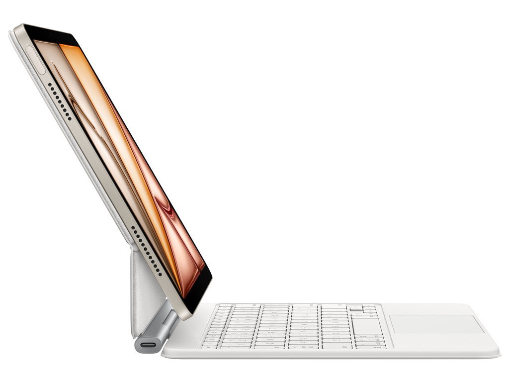Magic Keyboard je ideálny doplnok k iPadu Air. Má elegantný a prenosný dizajn a je na ňom radosť písať aj používať trackpad na presné ovládanie. Nechýba mu riadok 14 funkčných klávesov ani USB-C konektor na priechodné nabíjanie. Navyše chráni iPad spredu aj zozadu. Plávajúca konzolová konštrukcia sa dá plynulo prispôsobiť do rôznych pozorovacích uhlov a veľký sklenený trackpad rozširuje možnosti práce s iPadOS.