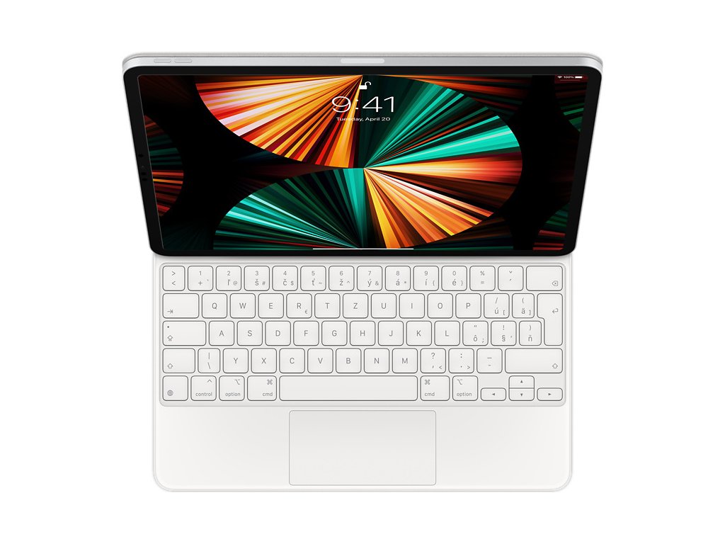 Magic Keyboard je dokonalý doplnok 12,9 palcového iPadu Pro. Výborne sa na ňom píše, má trackpad s novými možnosťami ovládania iPadOS a taktiež USB-C port na nabíjanie iPadu. Chráni ho spredu aj zozadu. iPad Pro sa k plávajúcej konzolovej konštrukcii Magic Keyboardu prichytáva magneticky, takže ho hladko nastavíš presne do takého uhla, v ktorom sa ti naňho pozerá najlepšie.