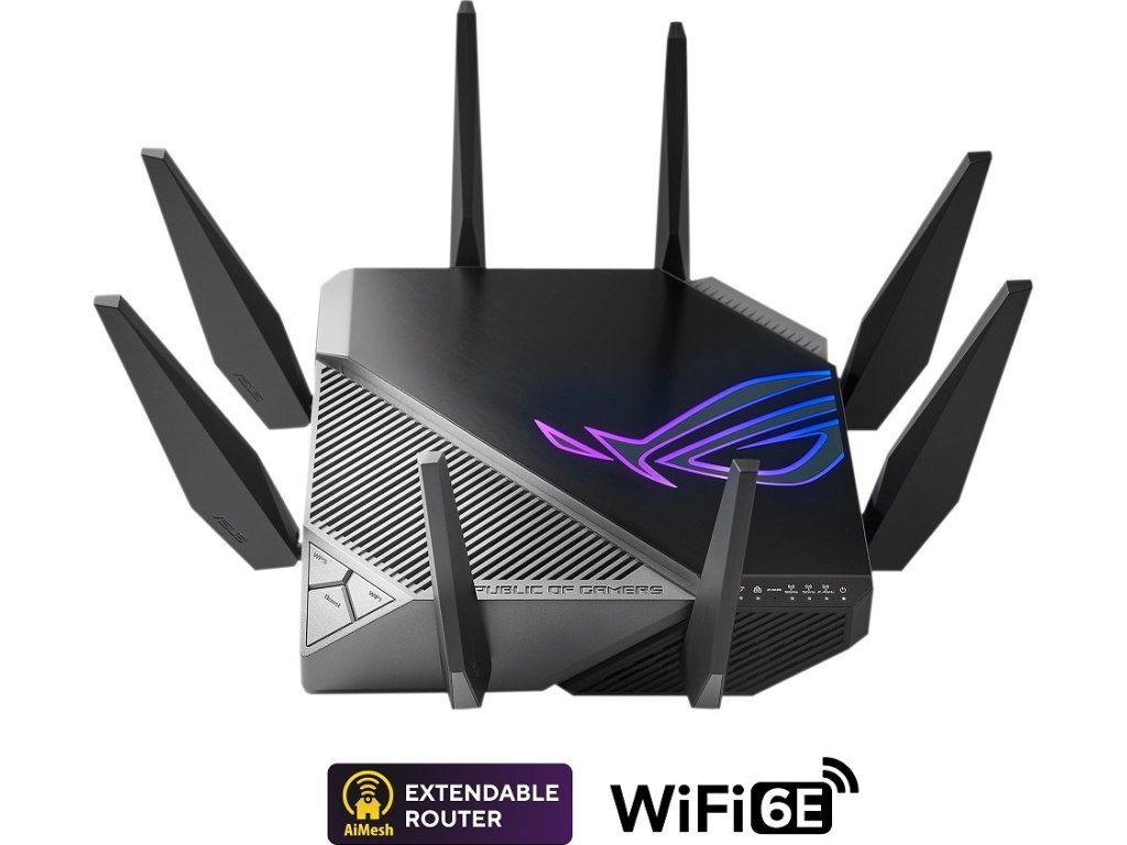 - Standard WiFi novej generácie – prvý trojpásmový WiFi 6E router na svete zvyšuje rýchlosť až 11 000 Mb/s.
