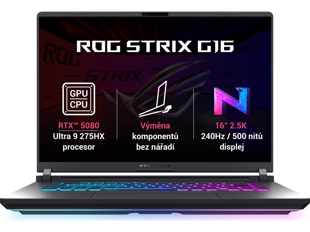 Grafika: NVIDIA GeForce RTX 5080 (16GB GDDR7, až 175W, ROG Boost) + Intel UHD Graphics (MUX Switch + Advanced Optimus)