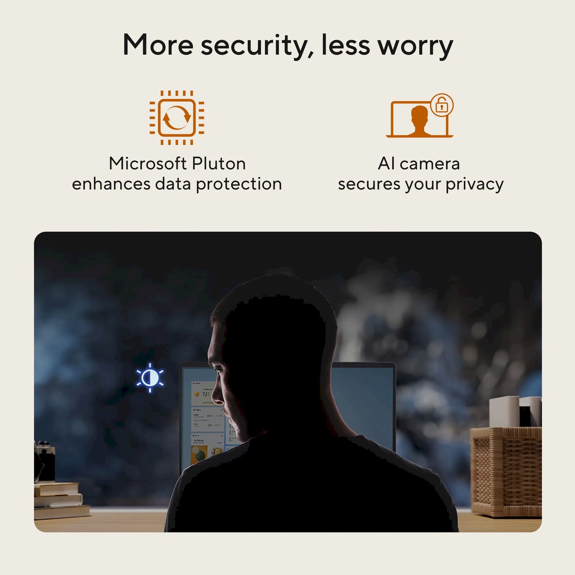 14" IPS displej s pomerom strán 16:10 ponúka viac miesta pre prácu s dokumentmi a tabuľkami. Rozlíšenie 1920 x 1200 (Full HD+) pixelov zaručuje ostrý obraz, zatiaľ čo antireflexná úprava znižuje odlesky a zlepšuje čitateľnosť na dennom svetle. Displej má široké pozorovacie uhly, vďaka čomu je vhodný aj na zdieľanie obsahu s kolegami či spolužiakmi. Či už pracujete, sledujete filmy alebo prezeráte web, obraz zostáva vždy čistý a príjemný pre oči.