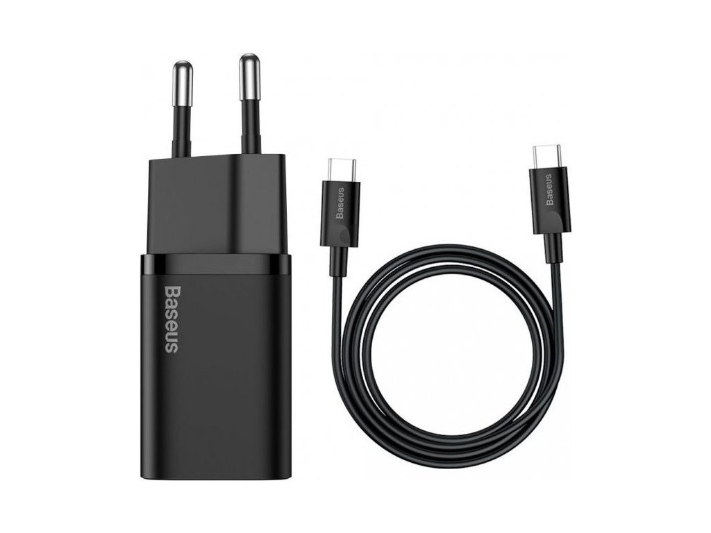 Baseus Nabíjací adaptér TZCCSUP-L01 USB-C 25W + USB-C kábel 1m, Čierny