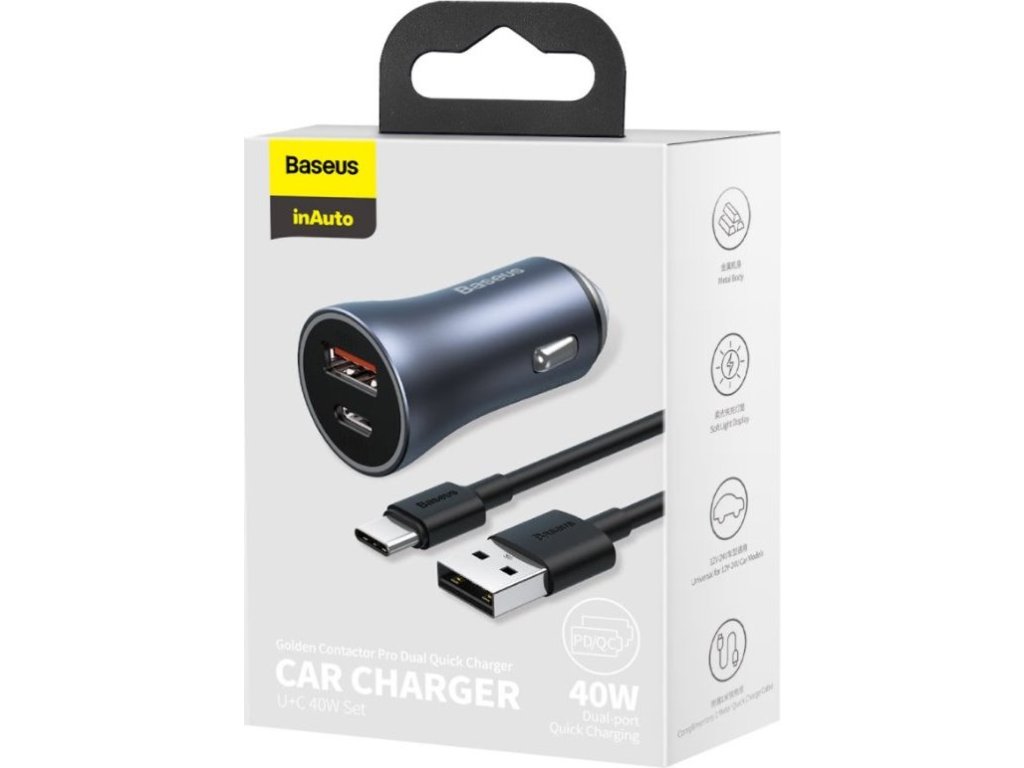 Baseus Golden Contactor Dual USB nabíjačka do auta s USB a USB-C výstupom a vysokým výkonom 40W