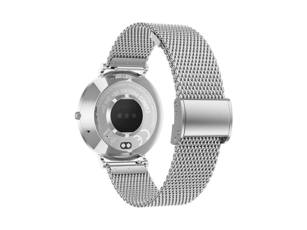 Druhá generácia luxusných fitness hodiniek CARNEO Phoenix HR+ z nerezovej ocele v striebornom prevedení s milánskym kovovým remienkom s farebným dotykovým displejom AMOLED HD monitorujú vašu dennú aktivitu, úroveň stresu, ale je možné ich tiež spárovať s mobilným telefónom a upozorniť vás na prichádzajúci hovor alebo SMS. Hodinky umožňujú telefonovať bez toho, aby ste museli telefón vybrať z tašky, vďaka vstavanému mikrofónu a reproduktoru až do vzdialenosti 10 m od telefónu. Ich extrémne tenké telo z nerezovej ocele s jednoduchými krivkami je tak návykové, že ich po prvom nosení nebudete chcieť zložiť z ruky. Výška bočného okraja iba 4 mm a hmotnosť iba 35 g zaručujú dokonalú diskrétnosť na ruke. Model Phoenix je vzhľadom na svoju veľkosť a hmotnosť určený pre tých, ktorí nie sú nadšenci do šikovných hodiniek.