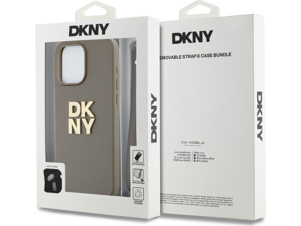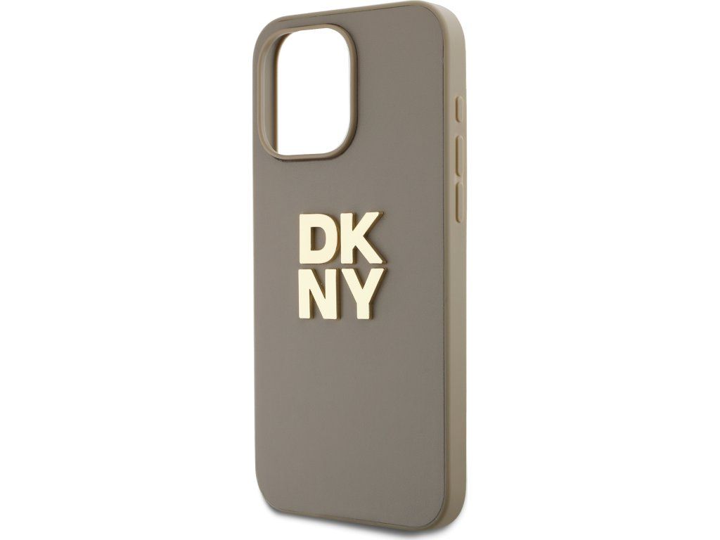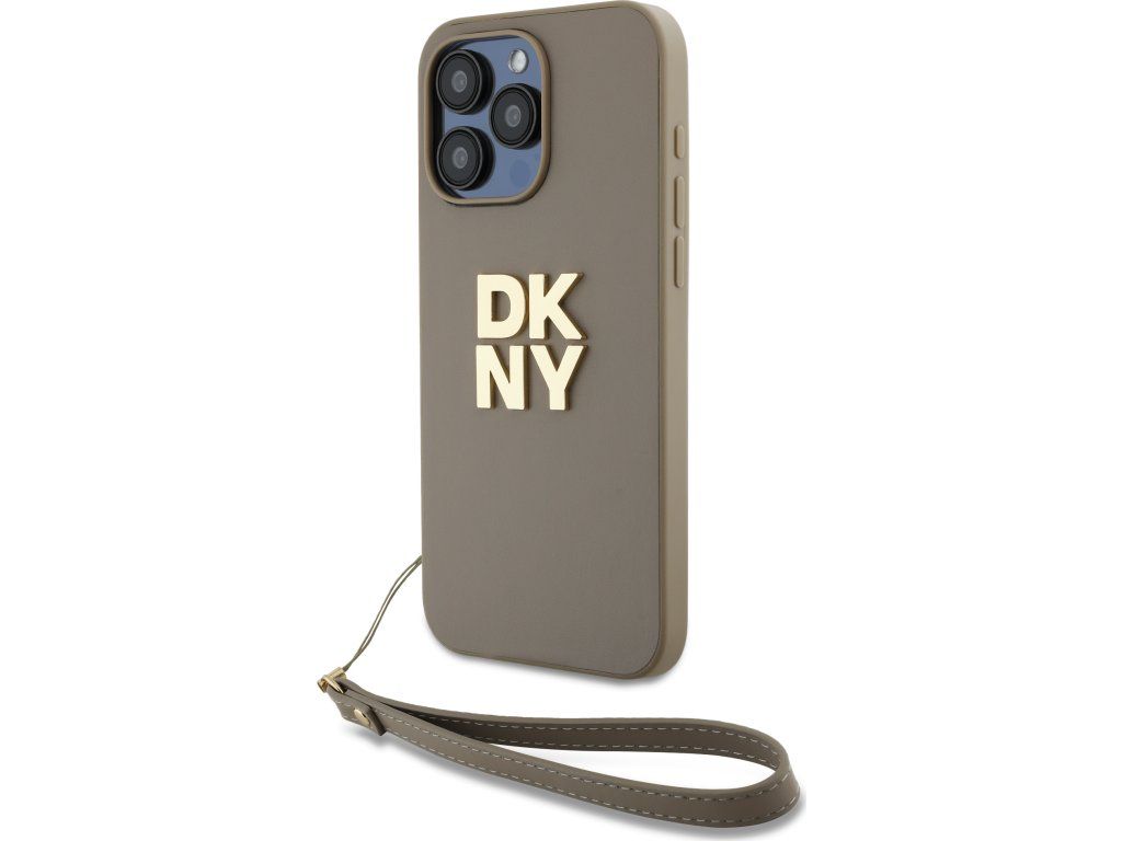 DKNY Stack Logo Wrist Strap Kožený Kryt pre iPhone 15 Pro, Hnedý