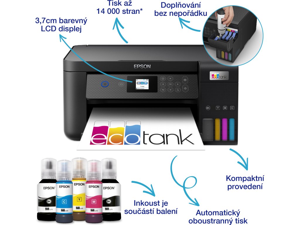 Ušetrite až 90% nákladov na tlač s tlačiarňami EcoTank od spoločnosti Epson bez atramentových kaziet. Integrované atramentové nádržky s veľkoobjemovými fľaštičkami s atramentom sa ľahko dopĺňajú vďaka špeciálne navrhnutým fľaštičkám. Bez nutnosti výmeny atramentových kaziet a flexibilnými funkciami pripojenie je to dokonalá tlačiareň pre každého, kto hľadá vysoko kvalitné výtlačky za neuveriteľne nízke náklady na tlač jednej strany.