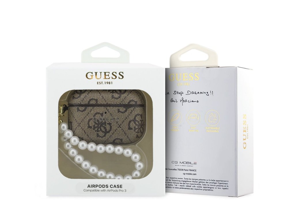 Guess PU 4G Logo Pearl Puzdro pre AirPods Pro 3, Hnedé