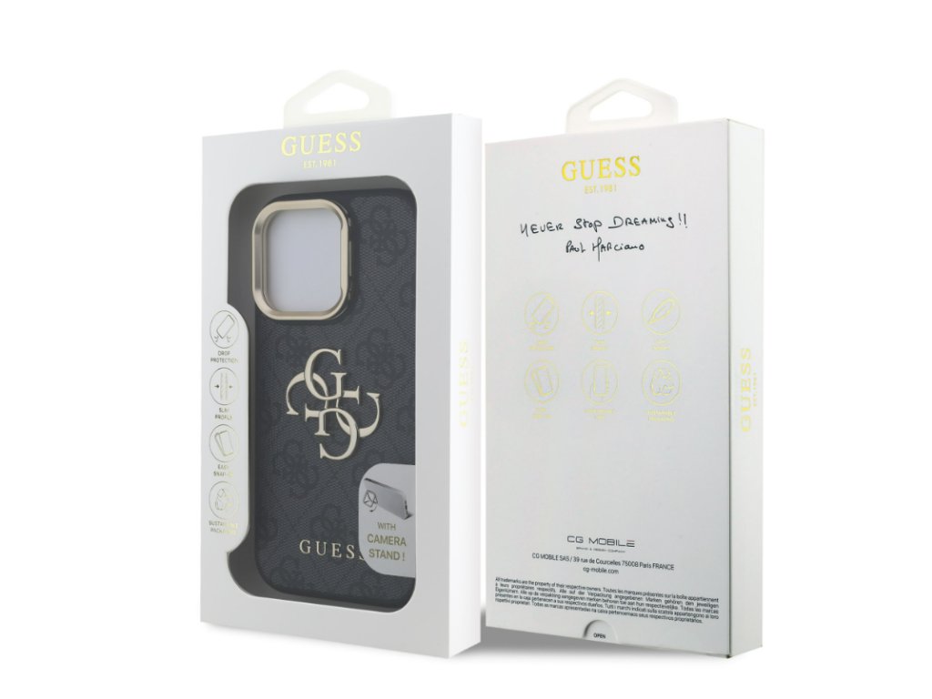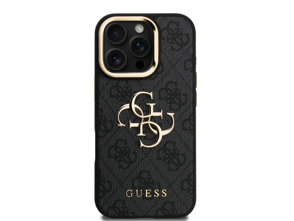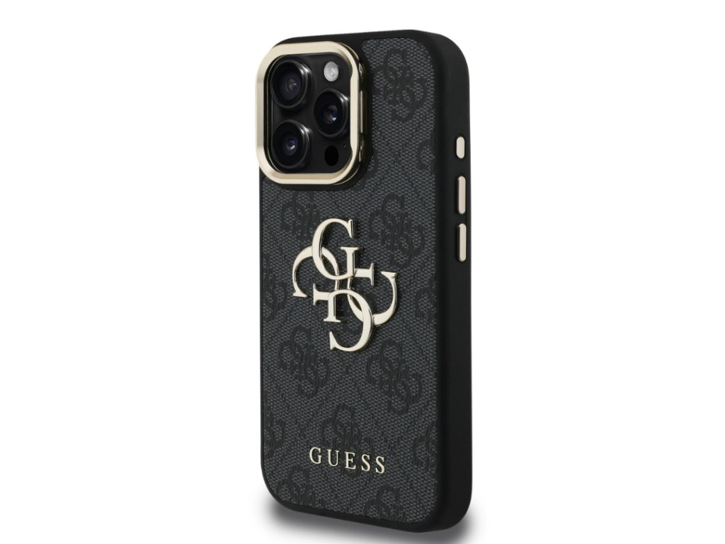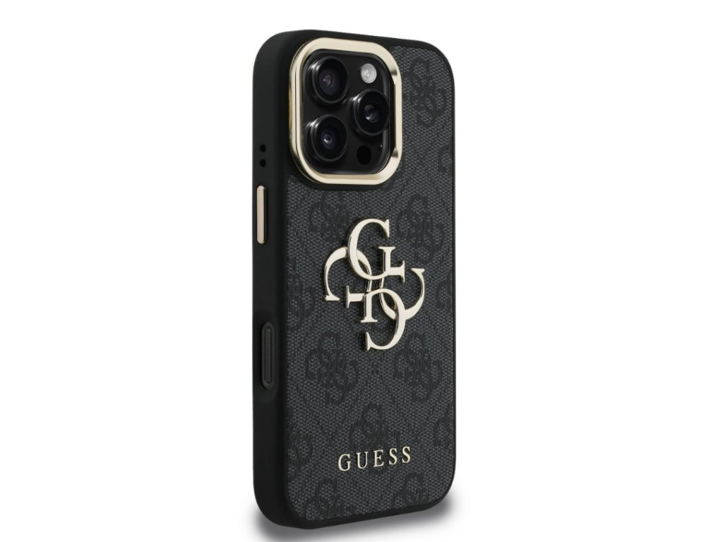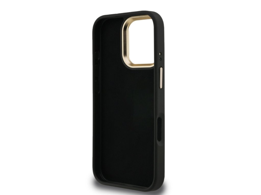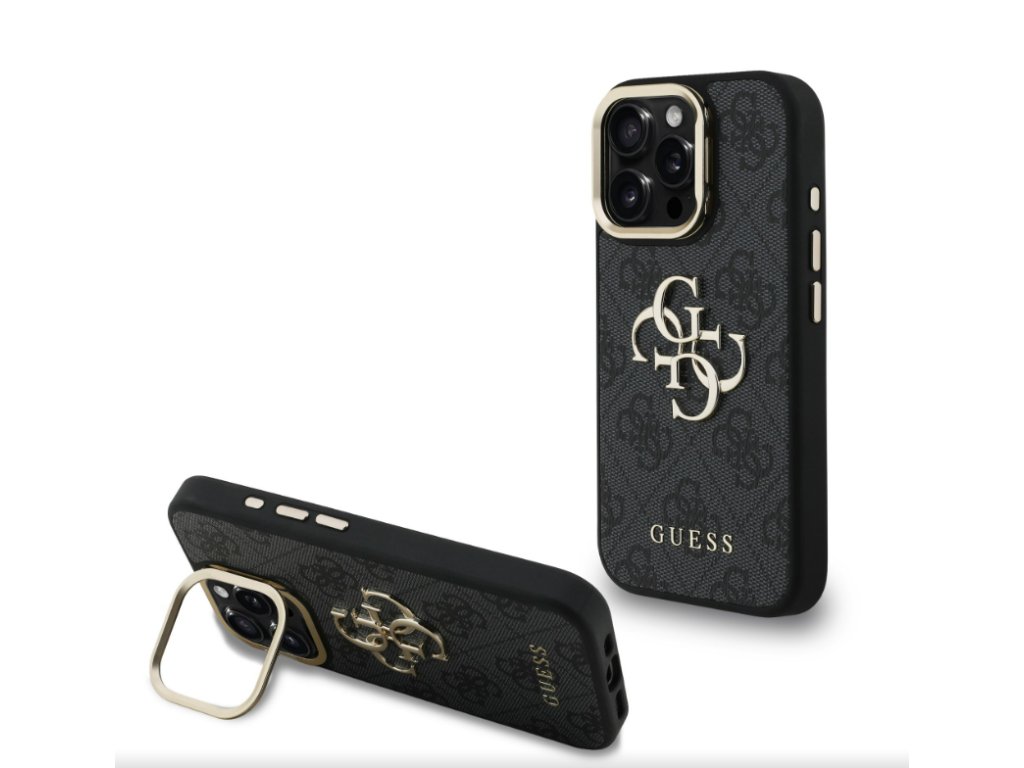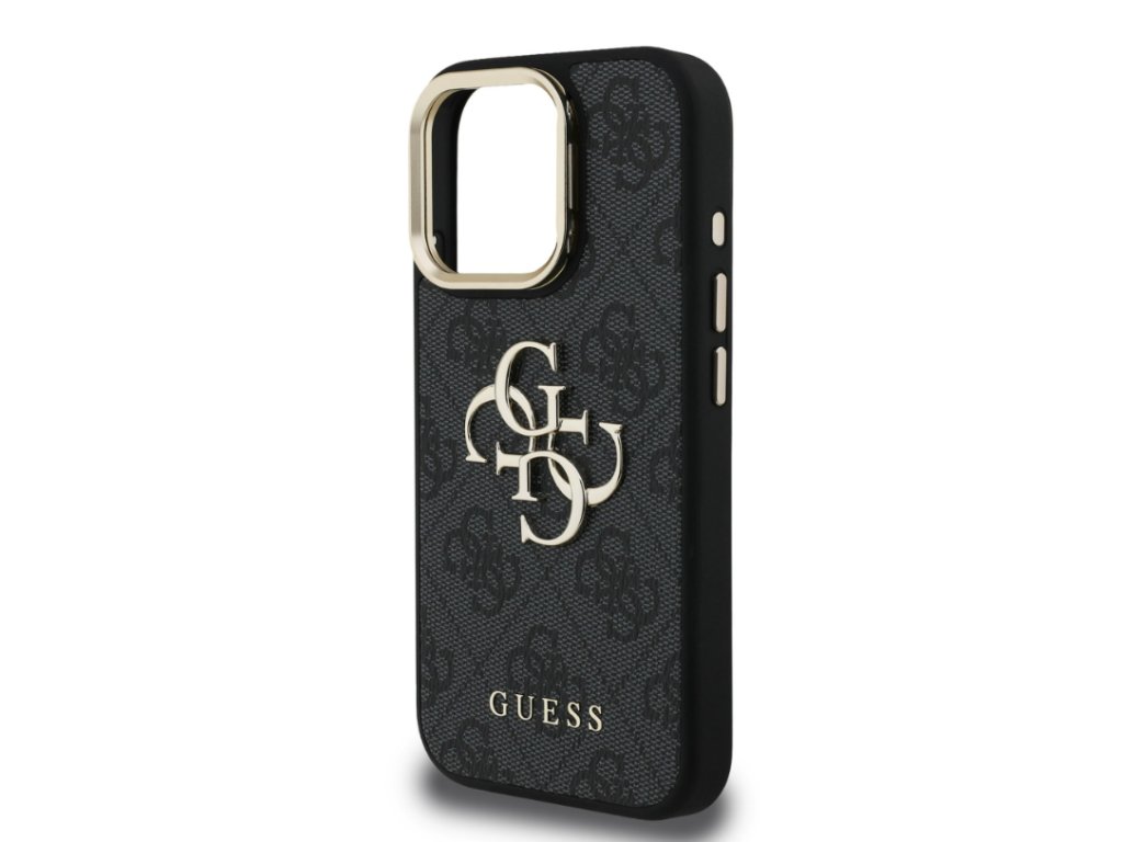 Guess PU 4G Metal Logo Stand Camera Frame Zadny Kryt pre iPhone 16 Pro, Čierny