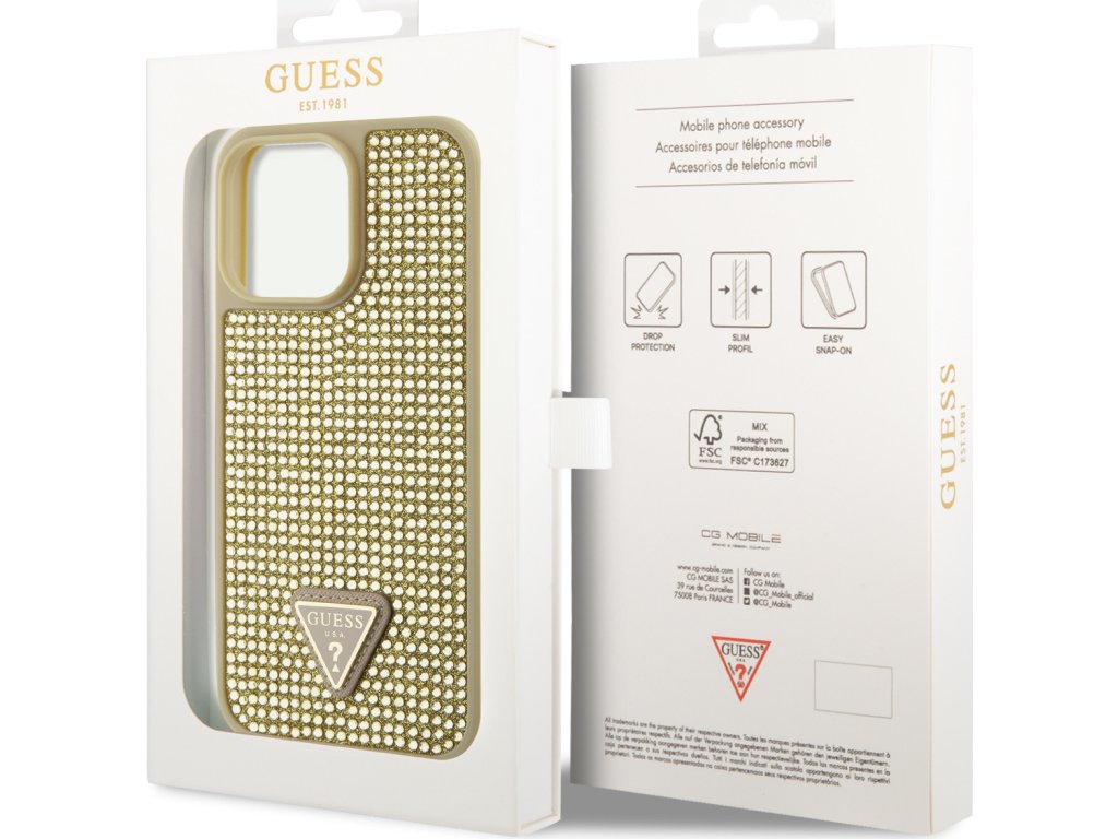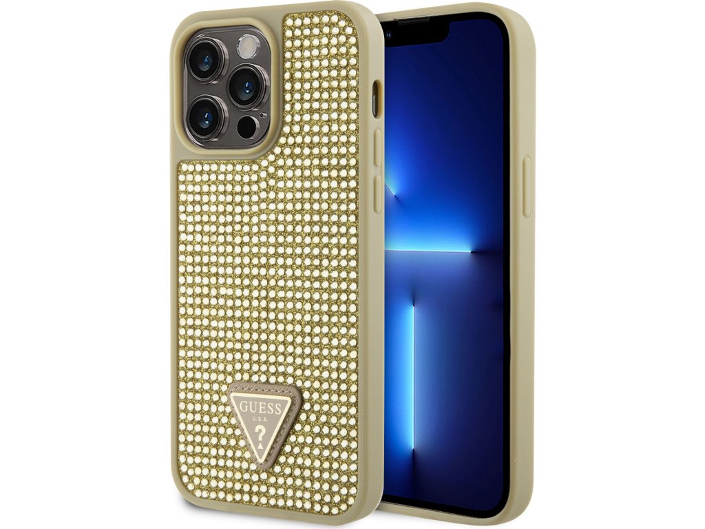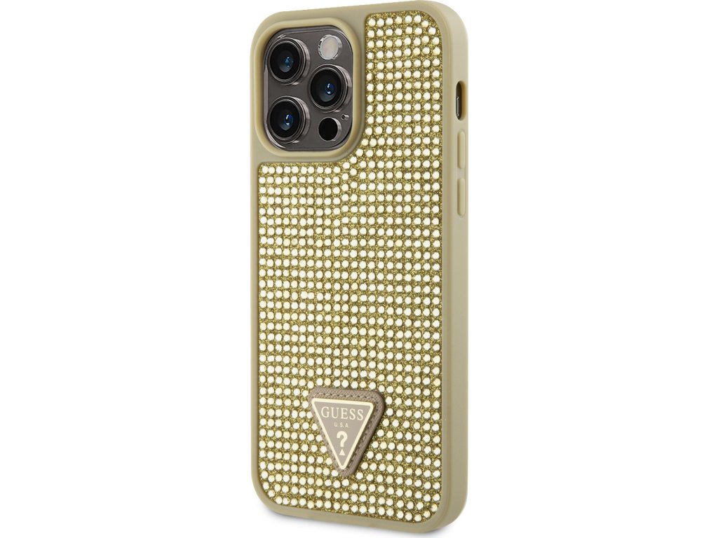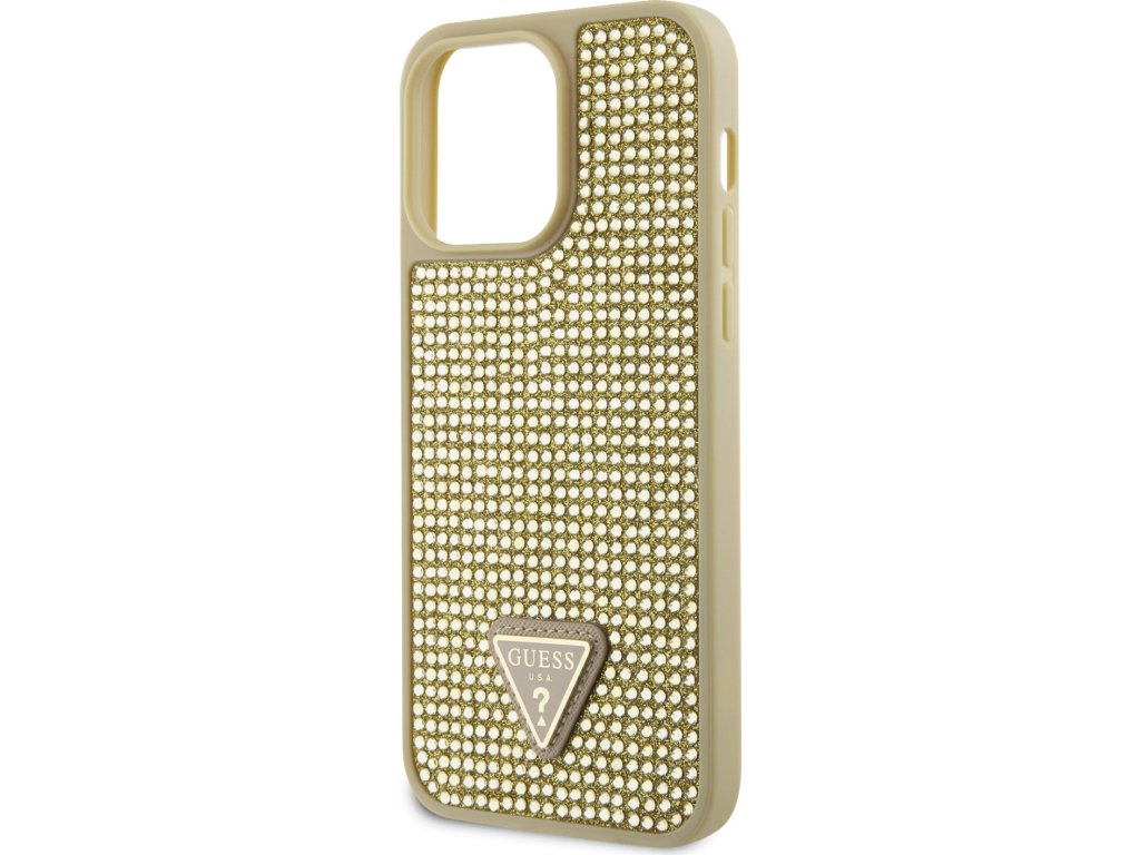 Guess Rhinestones Triangle Metal Logo Kryt pre iPhone 15 Pro Max, Zlatý