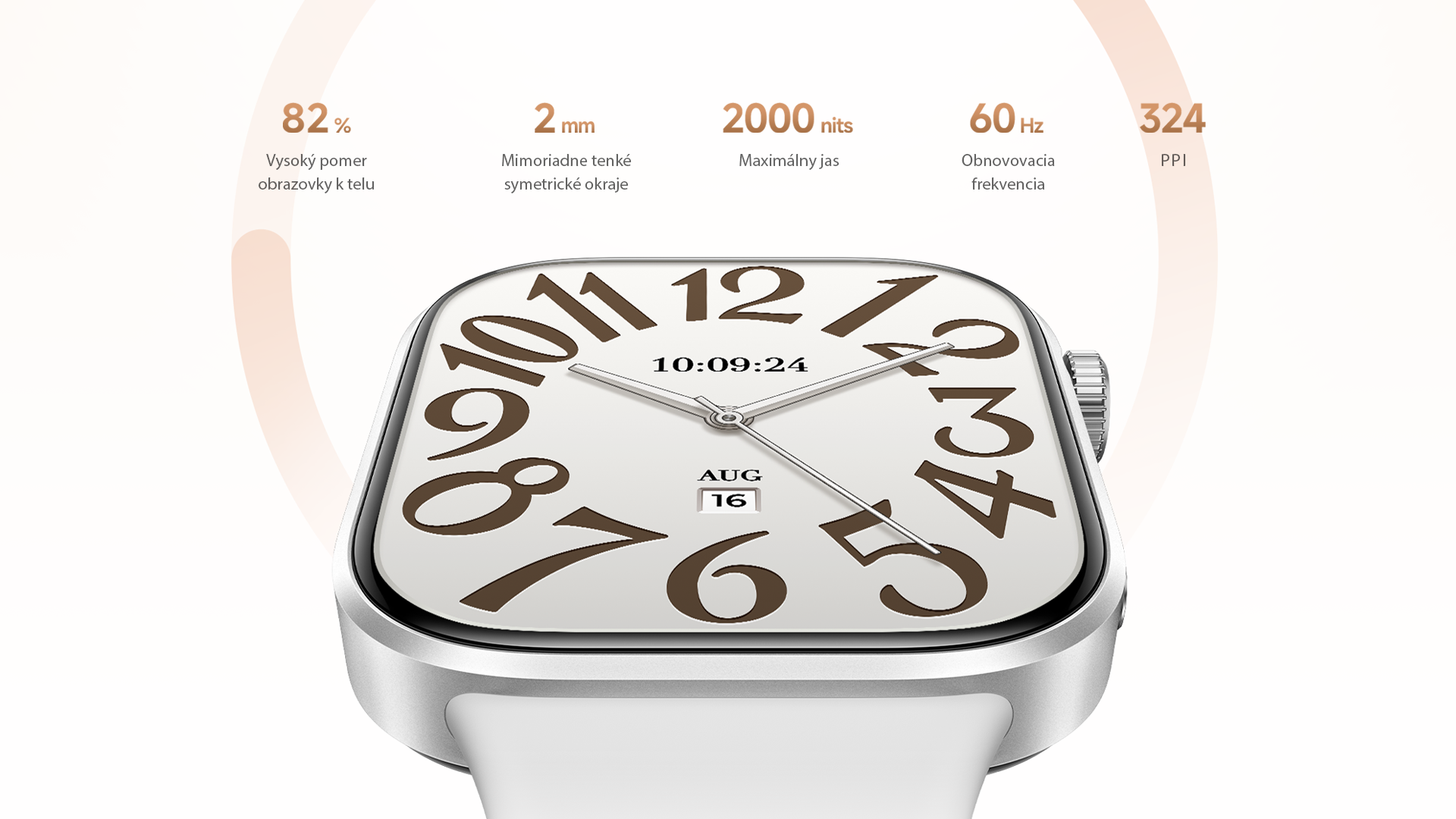 Hodinky REDMI Watch 6 ponúkajú krásny 2.07-palcový displej s ultra-tenkým 2mm rámčekom. Displej tak pokrýva až 82% čelnej strany hodiniek a dosahuje maximálny jas až 2000 nitov, vďaka čomu je displej perfektne čitateľný v interiéri aj v exteriéri.
