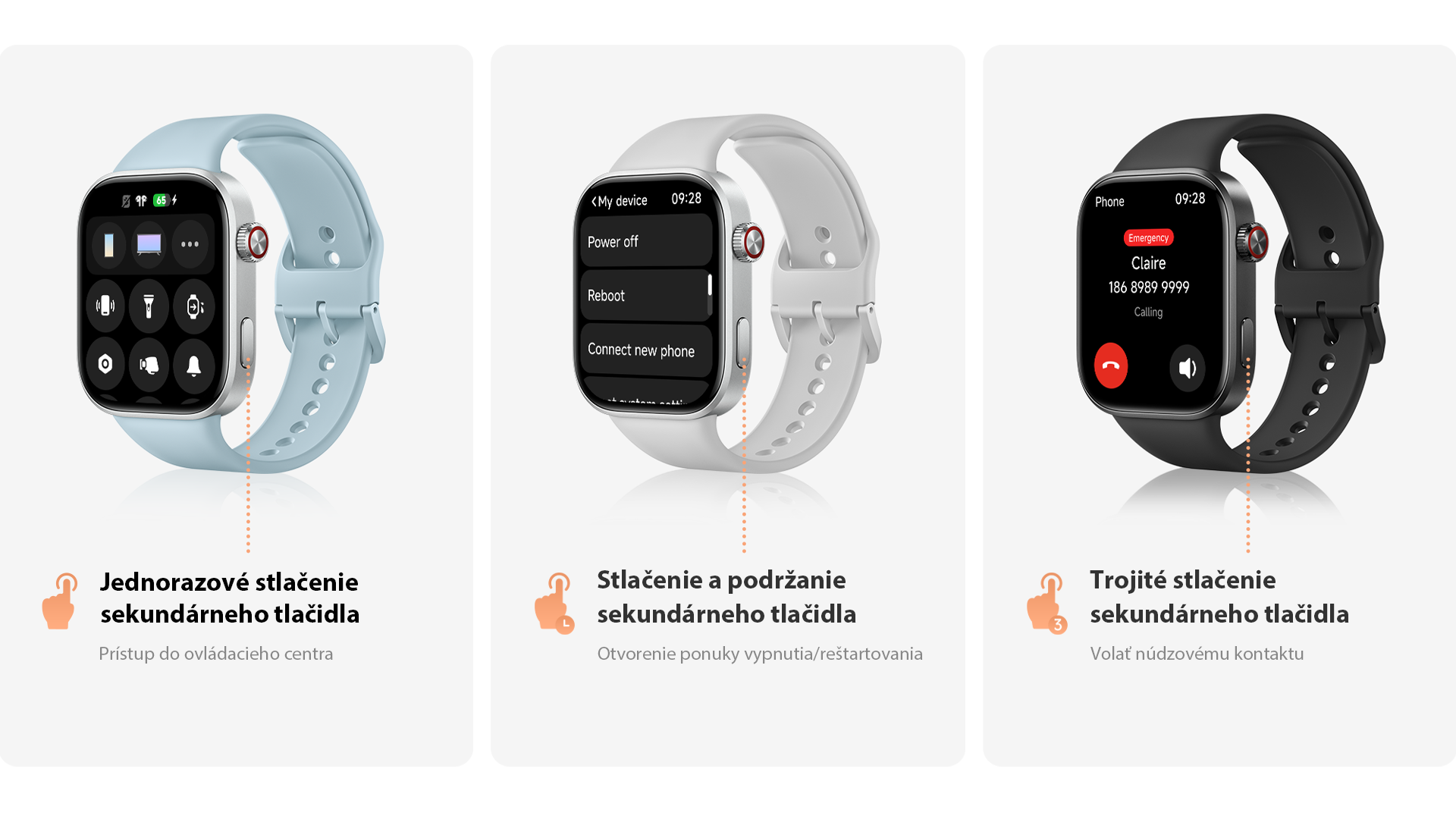 Korunku z nehrdzavejúcej ocele sme presunuli na lepšie miesto a doplnili ju sekundárnym tlačidlo, ktoré odomyká nové skratky a zjednodušuje ovládanie hodiniek. Štýlový červený detail korunky navyše dodáva hodinkám dynamiku, ktorá vynikne pri každom pohybe zápästia.