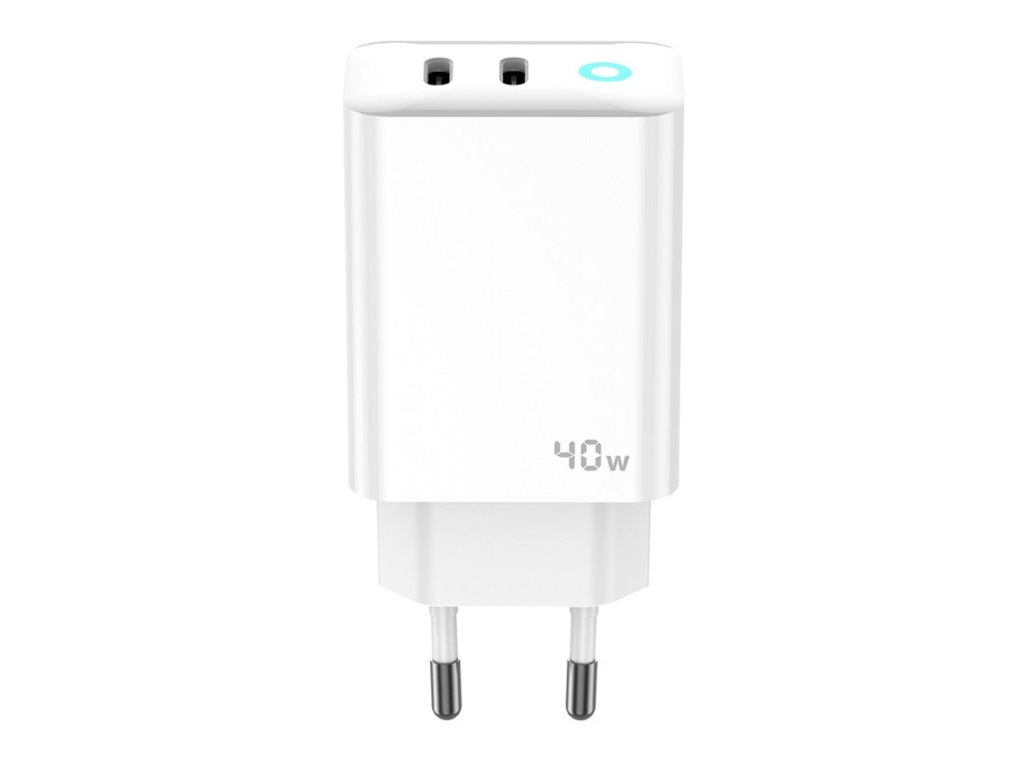 - Dva porty USB-C: Dva porty USB-C umožňujú súčasné nabíjanie dvoch zariadení s plnou účinnosťou, čím šetria čas a miesto.