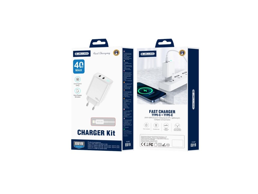 JELLICO Nabíjačka 40W 2x USB-C + kábel Lightning, Biela