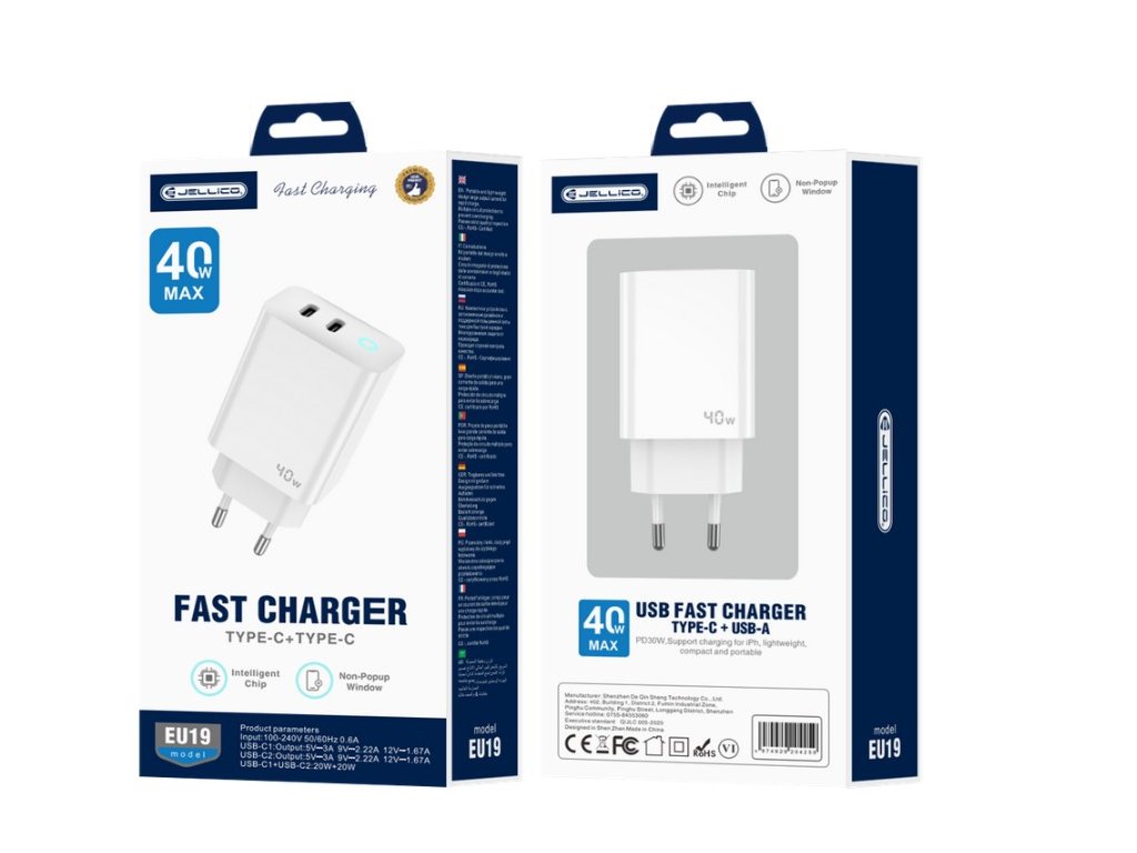 JELLICO EU19 je viac než len nabíjačka. Je zárukou rýchleho, bezpečného a efektívneho nabíjania vašich najcennejších zariadení. Biele, elegantné puzdro dokonale zapadne do každého interiéru a vďaka kompaktným rozmerom je nabíjačka ideálnym spoločníkom na cesty. Či už potrebujete rýchle nabitie doma, v práci alebo na cestách, JELLICO EU19 je voľbou, na ktorú sa môžete spoľahnúť.