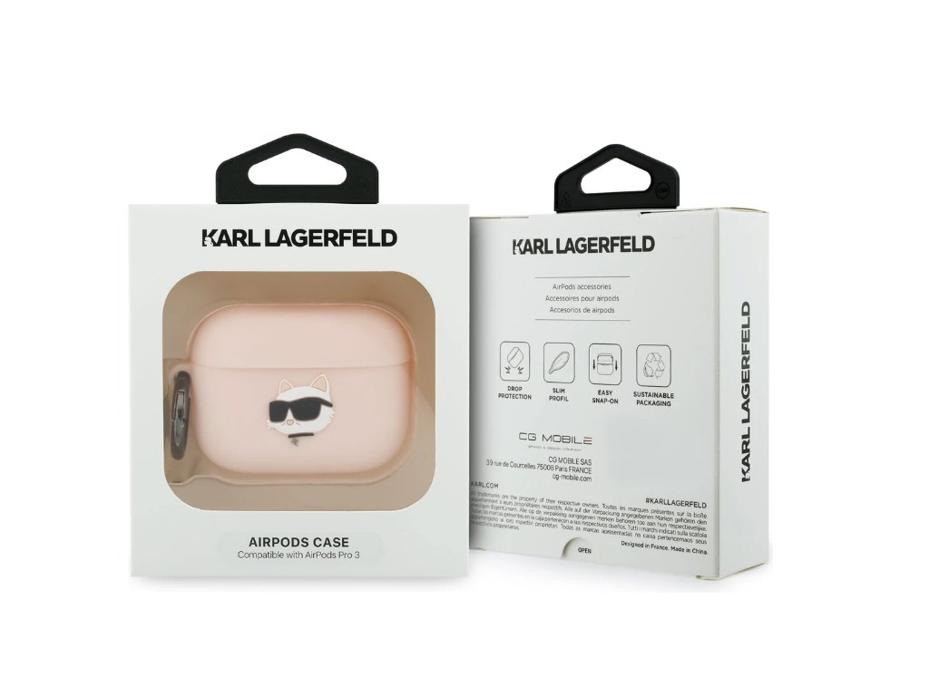 Karl Lagerfeld 3D Logo Choupette Head AirPods Pro3, Ružové