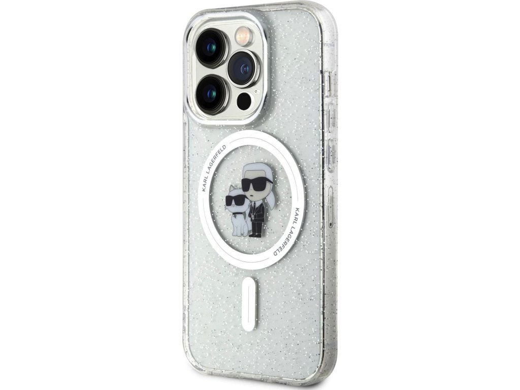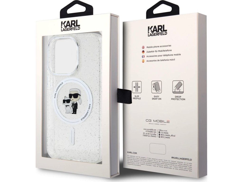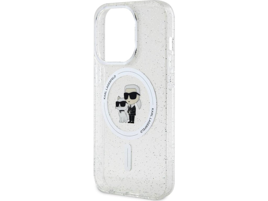 Karl Lagerfeld IML Glitter Karl and Choupette Kryt s MagSafe pre iPhone 15 Pro, Transparentný