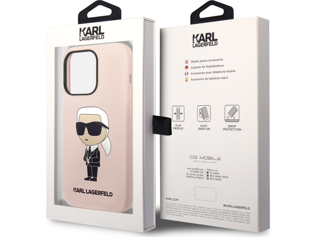 Karl Lagerfeld Liquid Silikónový Ikonik Kryt pre iPhone 15 Pro Max, Ružový