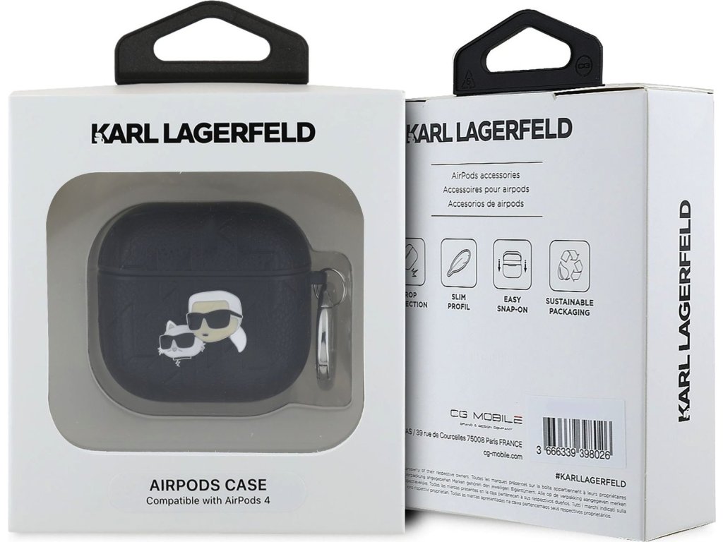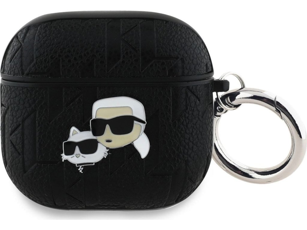 Karl Lagerfeld PU Embossed Karl and Choupette Heads Puzdro pre AirPods 4, Čierne