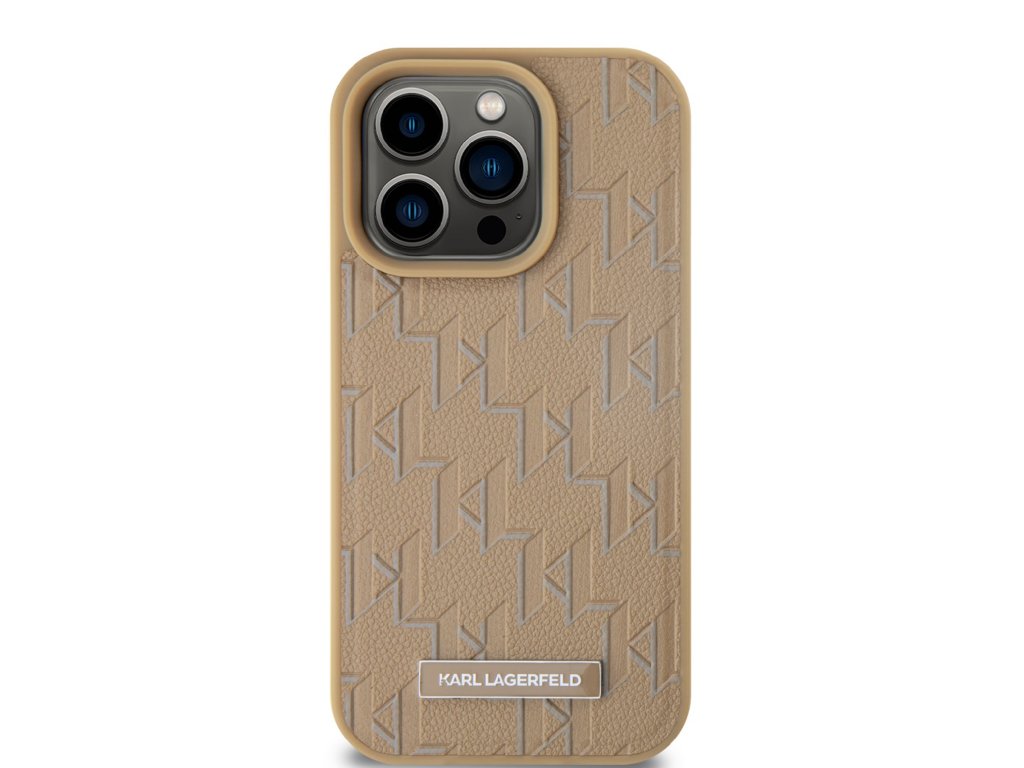 Karl Lagerfeld PU Leather Monogram Metal Logo MagSafe Kryt pre iPhone 14 Pro Max, Hnedý