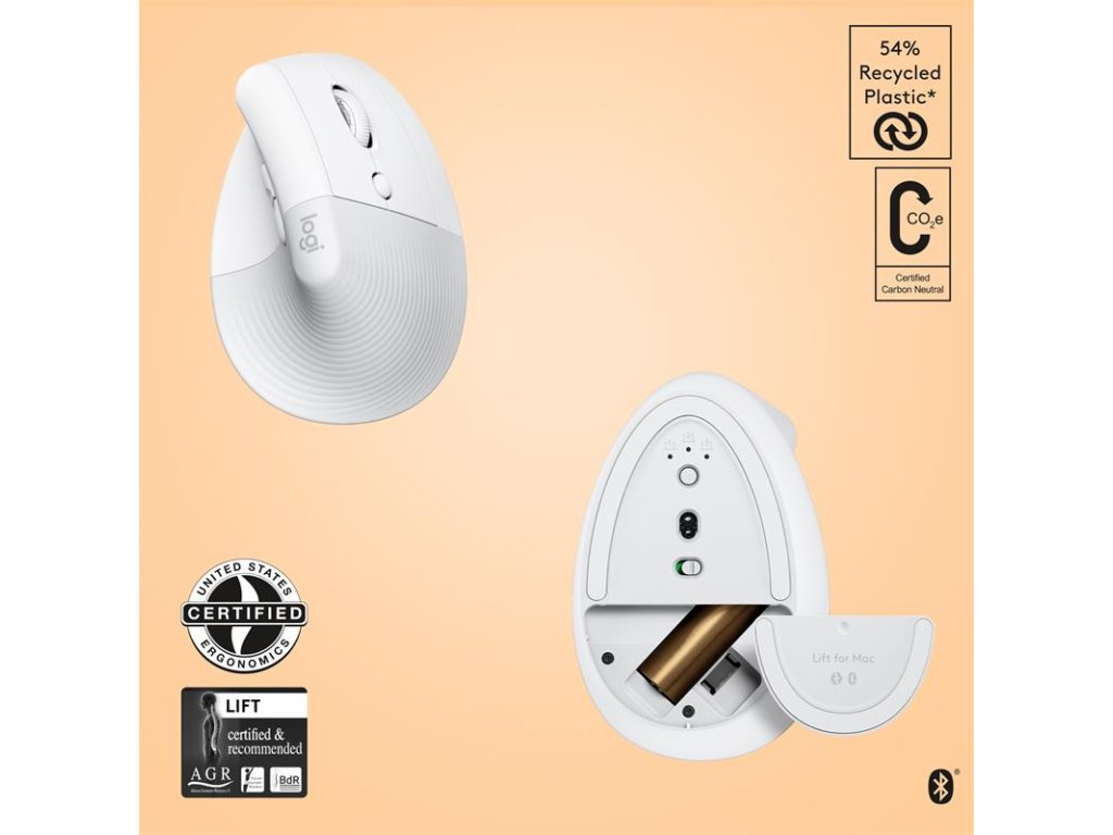 Logitech Lift for Mac Vertical Ergonomická Bezdrôtová Myš, Biela
