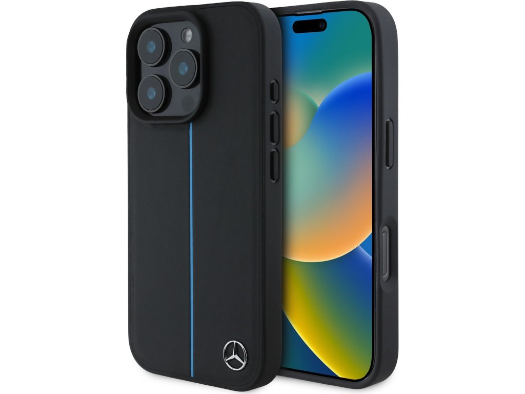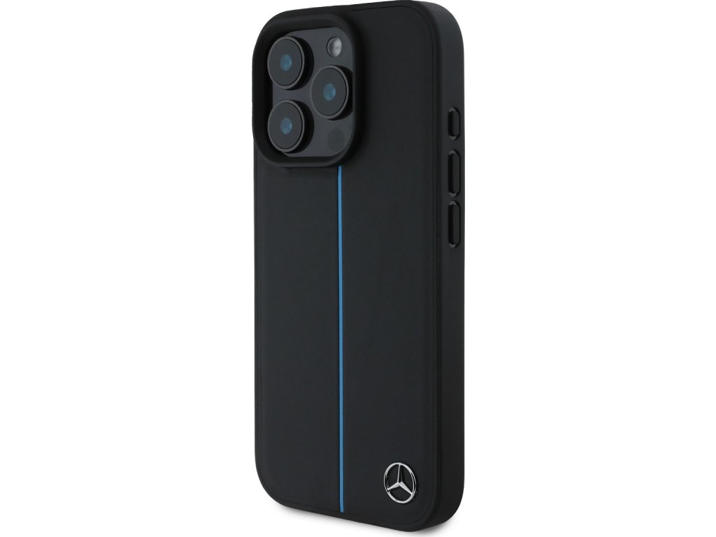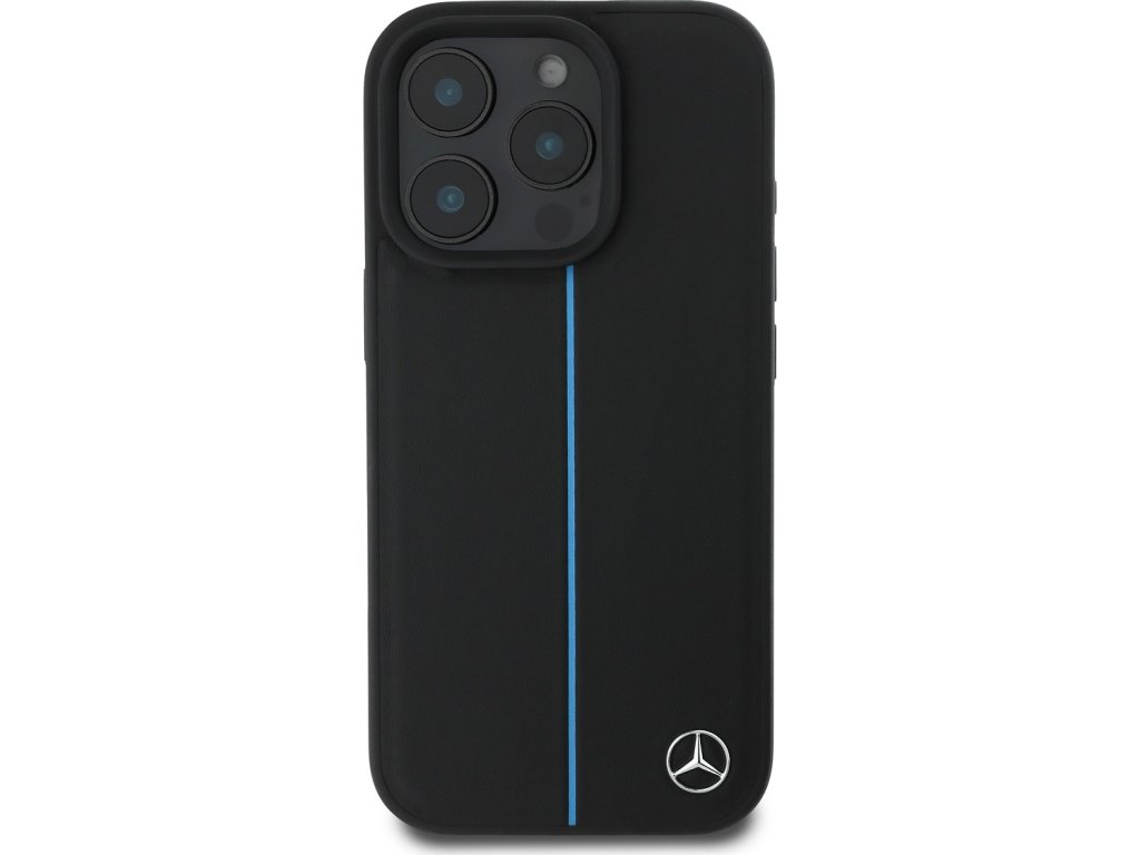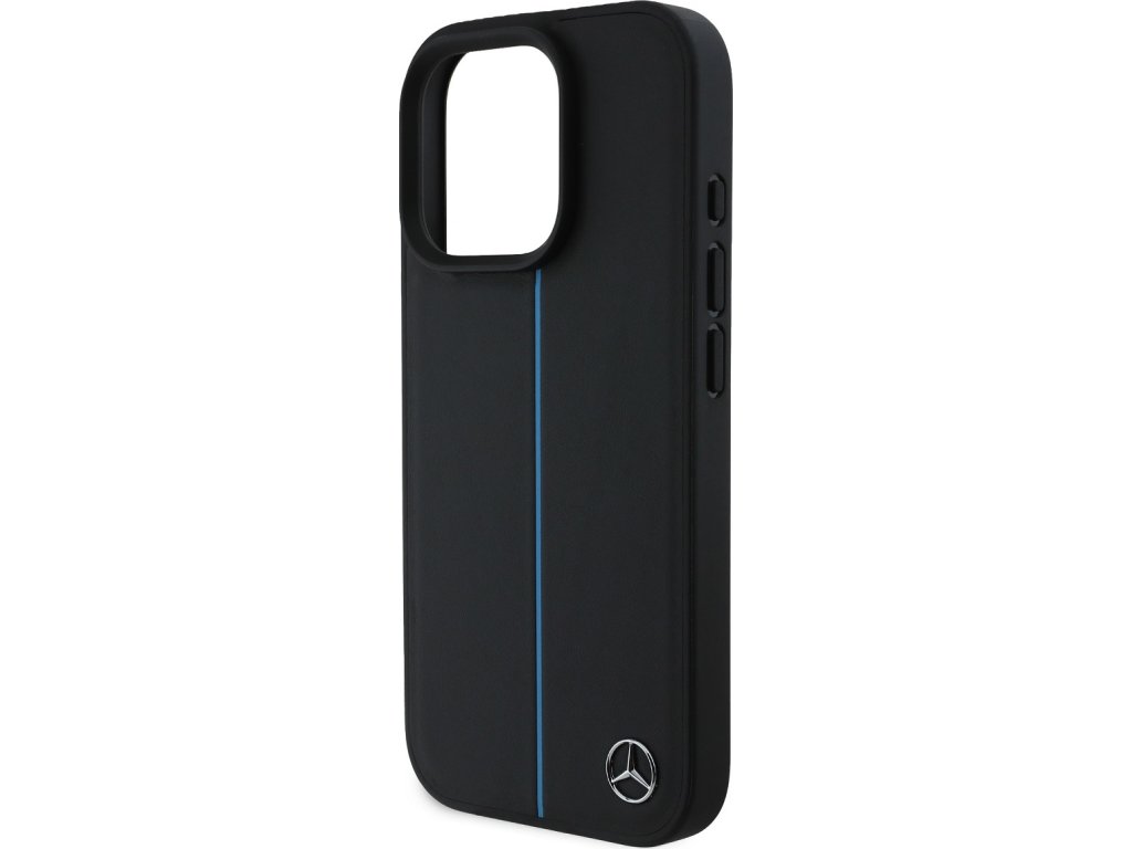 Mercedes Blue Stripe Kožený Kryt s MagSafe pre iPhone 16 Pro, Čierny