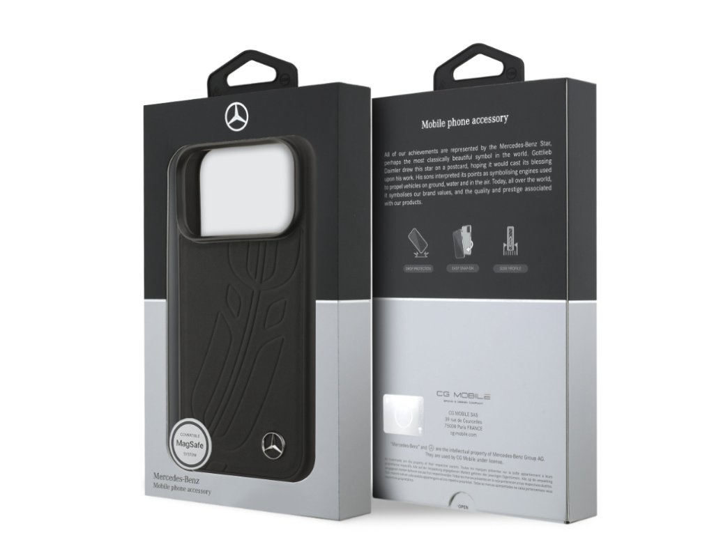 Mercedes Kožený Kryt s MagSafe pre iPhone 17 Pro, Čierny