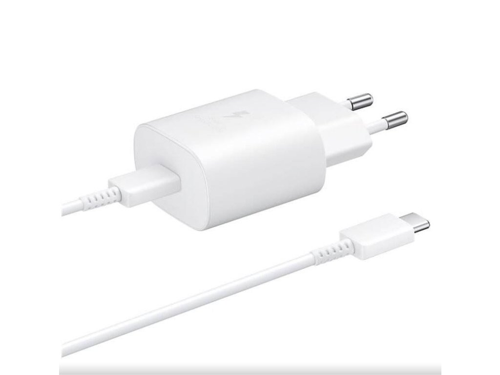 Nabíjací adaptér Samsung EP-TA800EWE USB-C 25W + USB-C kábel, Biely (Bulk balenie)