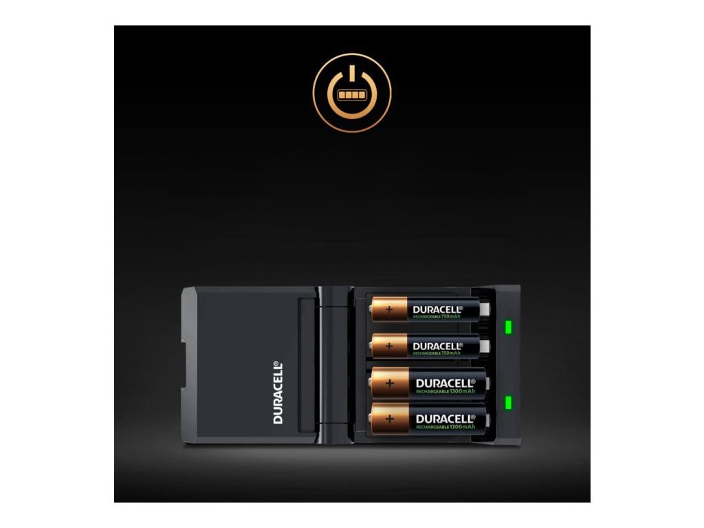 Výkonná univerzálna nabíjačka DURACELL CEF14 pre akumulátory LR03 a LR6 s auto ističom. Nabíjačka poskytuje po iba 45 minútach nabíjania, 4 hodiny používania batérie ! Jednoduché, bezpečné a spoľahlivé riešenie pre každodenné energetické potreby, nabíjačka dokáže nabíjať štyri AA batérie úplne za 4 hodiny.
