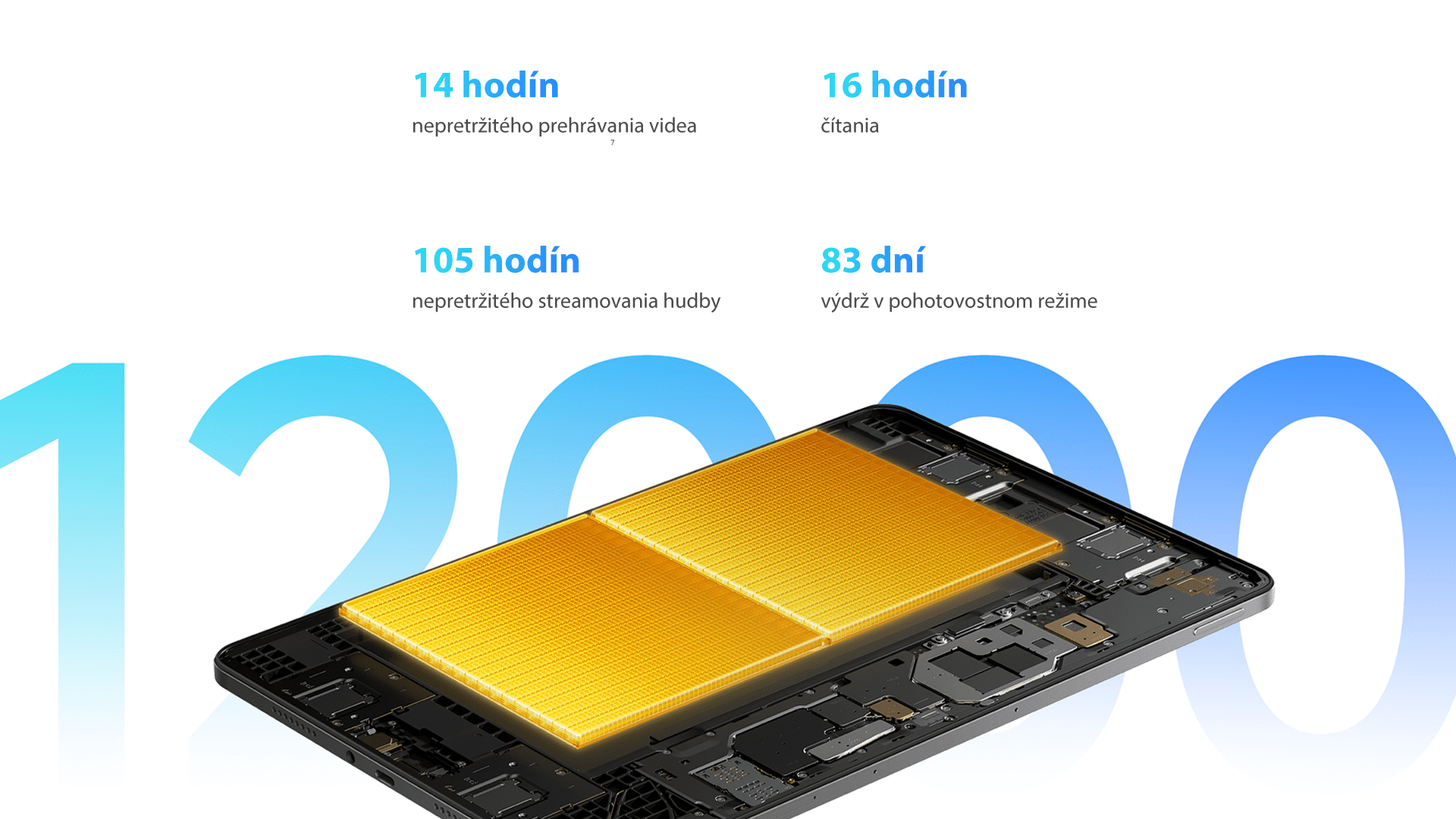 Zariadenie je vybavený obrovskou 12000mAh (typ) batériou. Ľahko podporuje vaše obľúbené aktivity po celé hodiny, čím vás zbaví obáv z vybitia batérie.
