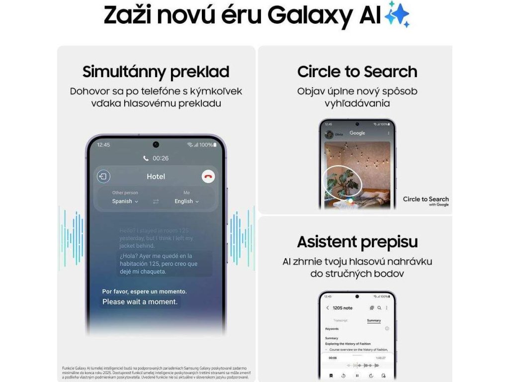 *Funkcie Galaxy AI (umelé inteligencie) budú na podporovaných zariadeniach Samsung Galaxy poskytované zadarmo minimálne do konca roku 2025. Dostupnosť funkcií umelej inteligencie poskytovaných tretími stranami sa môže zmeniť a podlieha vlastným podmienkam poskytovateľa.