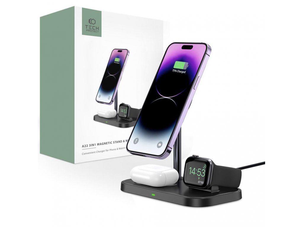 TECH-PROTECT Bezdrôtová nabíjačka s MagSafe QI15W-A22 3v1, Čierna