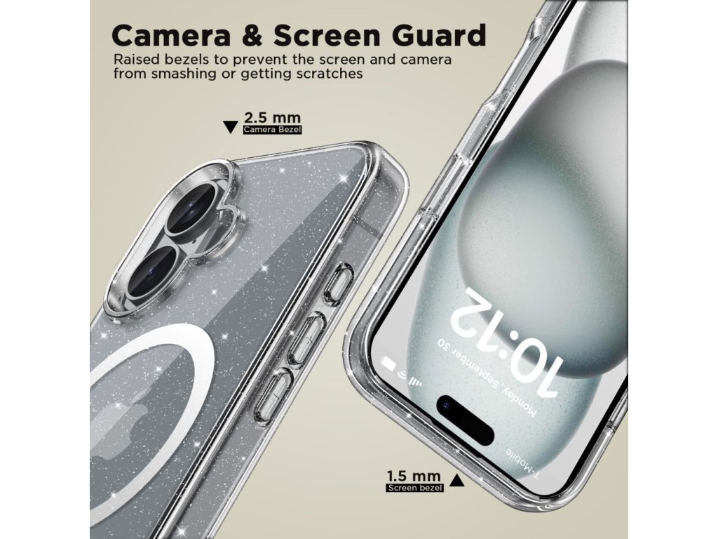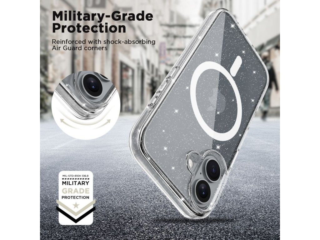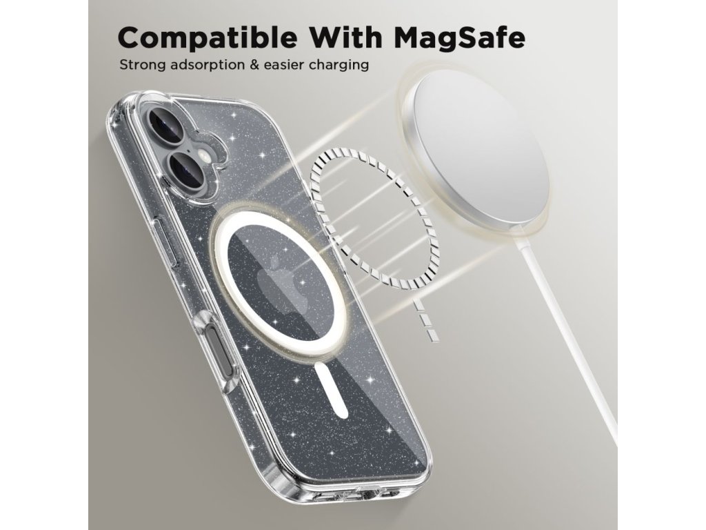 TECH-PROTECT Flexair Glitter Kryt s MagSafe pre iPhone 16, Transparentný