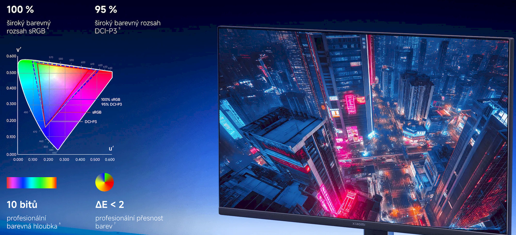 - Jas a farby: 400 nitov, 1,07 miliardy farieb (10bit), kontrast 1000:1