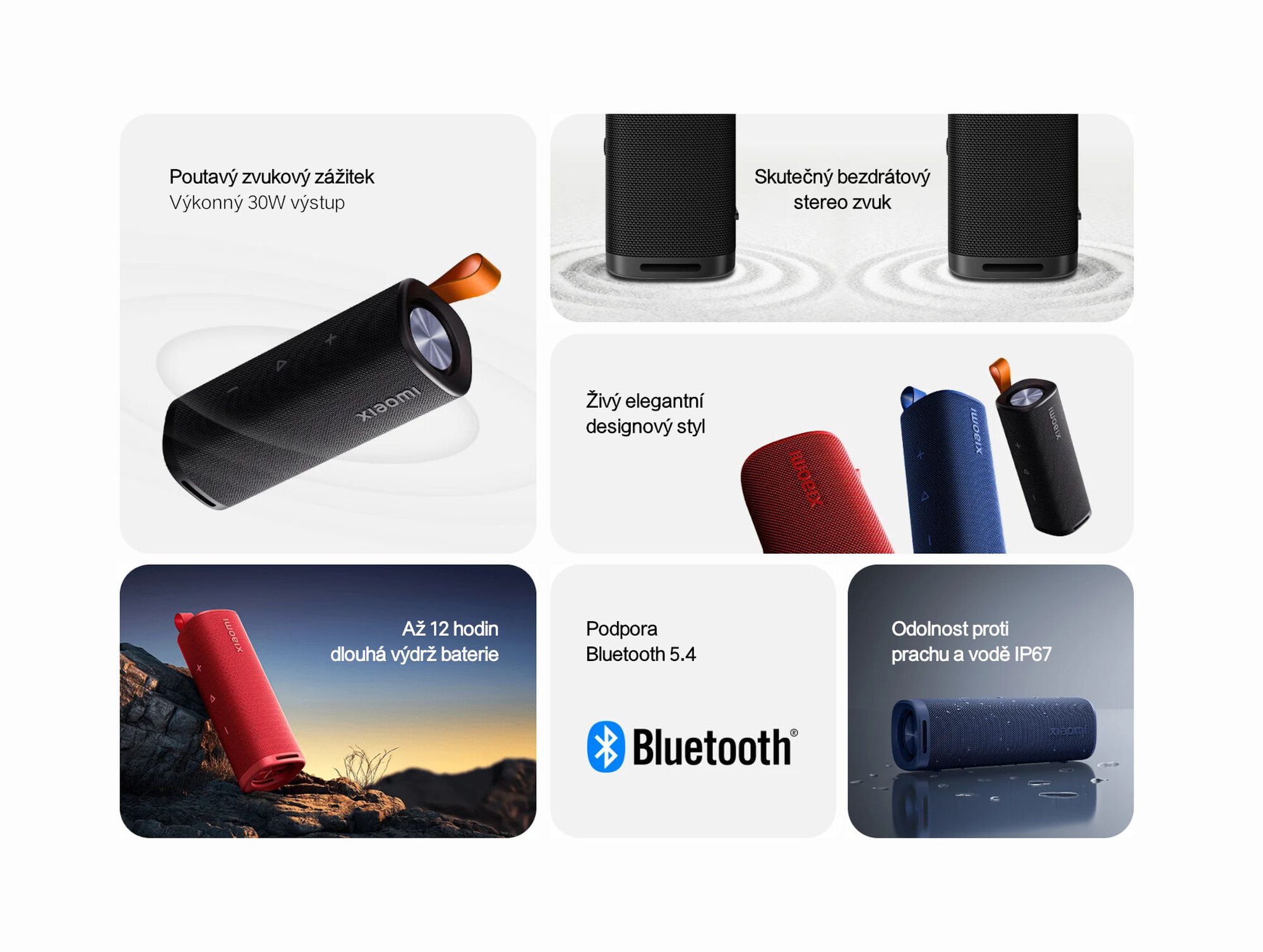 Xiaomi Sound Outdoor je navrhnutý na každodenné používanie. Je ľahký, váži iba 597 gramov, a vďaka kompaktným rozmerom 6,6 × 6,8 × 19,66 cm sa ľahko zmestí do tašky alebo batohu. Elegantné farebné prevedenia navyše zaručujú, že reproduktor bude štýlovým doplnkom nielen na cestách.