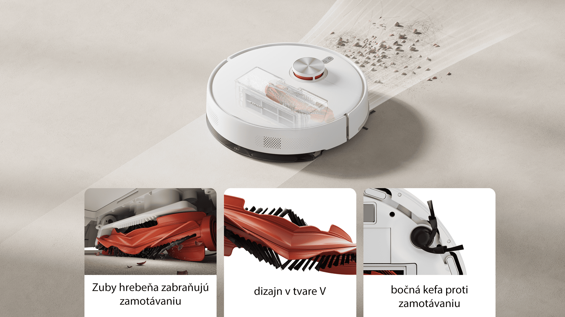 Robotický vysávač využíva naše viacrozmerné technológie proti zamotávaniu, ktoré si ľahko poradia s dlhými aj krátkymi vlasmi a srsťou domácich zvierat. Zametá, namotáva, zberá, češe a vysáva zároveň. Vďaka hrebeňovitej konštrukcii doplnenej špeciálne tvarovanou hlavnou kefou a bočnou kefkou proti zamotávaniu, zabezpečuje účinne čistenie vlasov aj chlpov.