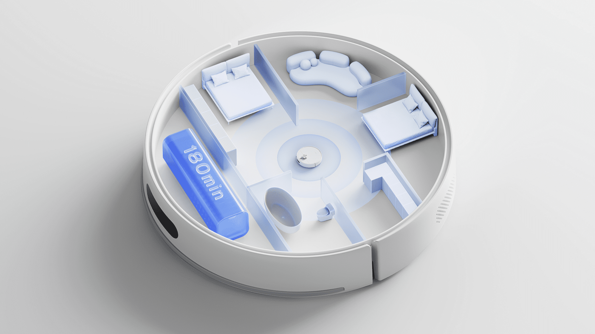 Vďaka vysokokapacitnej batérii s kapacitou 5200 mAh dokáže v štandardnom režime vysávať a mopovať až 180 minút na jedno nabitie, preto je ideálny na čistenie aj veľkých domácnosti.