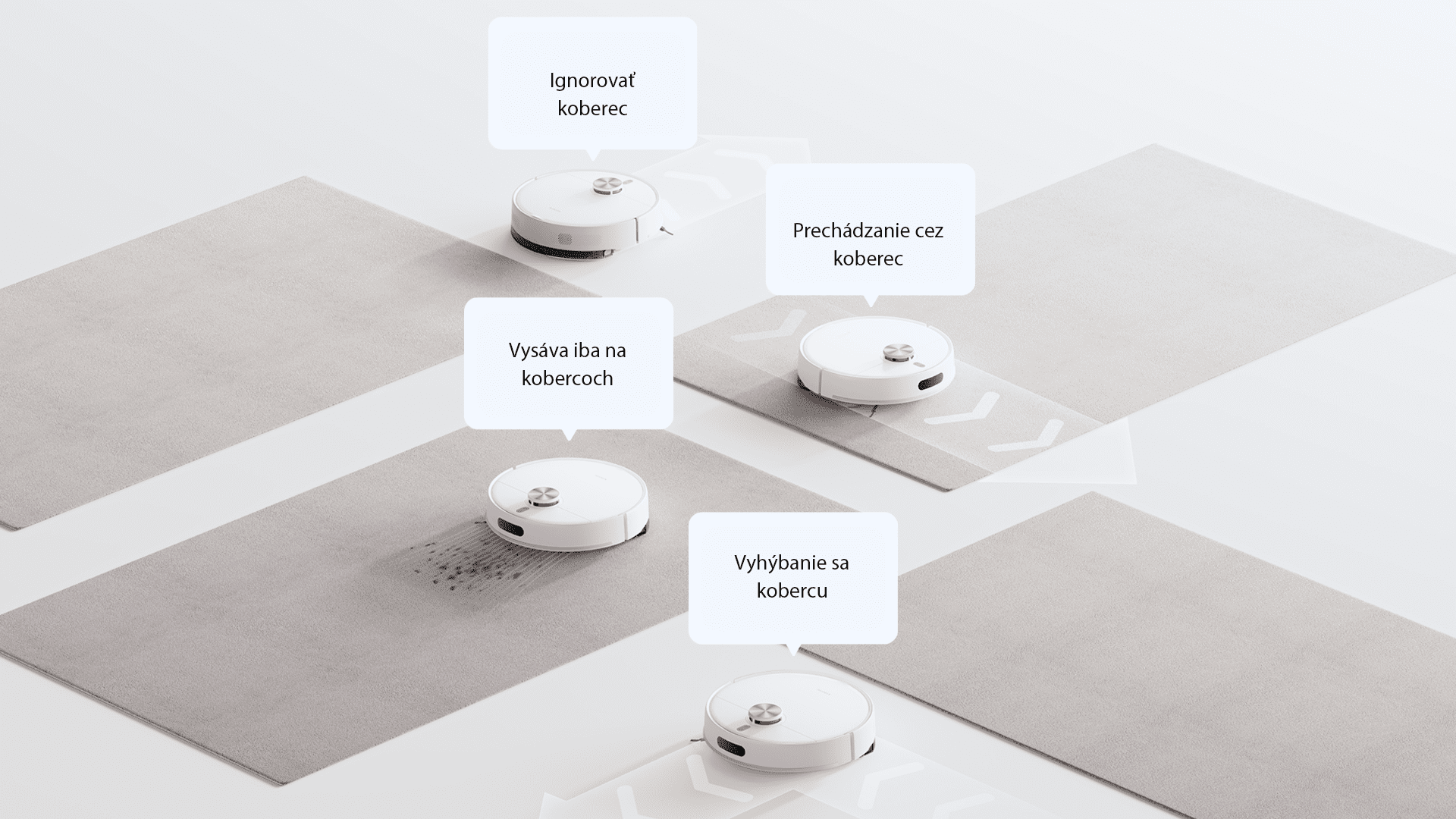 Máte v domácnosti koberce a bojíte sa že vysávač si s nimi nebude vedieť poradiť? S Robotickým vysávačom Xiaomi Robot Vacuum S40, si už nemusíte robiť starosti. Sami si totižto nastavíte ako sa má vysávač v okolí kobercov správať. Ponúka dôkladné hĺbkové čistenie s dvoma prechodmi a silným sacím výkonom pre efektívne vysávanie kobercov. V aplikácii Xiaomi Home si sami vyberiete či má vysávač koberec povysávať, prejsť, vyhnúť sa mu alebo vysávať iba koberce samostatne.